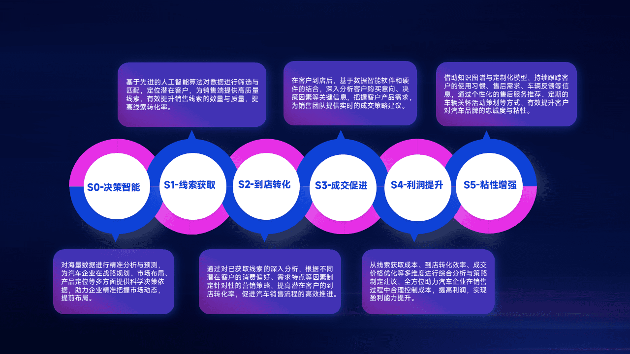 通过拓宽潜在客户来源、、优化线索分配并提高到店转化率,,,,以增强销售效率。。。同时,,利用线索数据不断优化分析模型,,有效提升转化率,,,,扩大营销影响力。。。